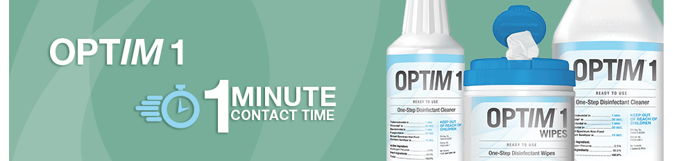 With a 1 minute broad-spectrum contact time, OPTIM 1 is one of the fastest and most effective cleaner & intermediate level disinfectants. It is listed as a category IV, the EPA’s lowest toxicity category. OPTIM 1 provides the confidence that you are compliant and mindful of patients, staff, equipment and the environment without compromise: the perfect balance.